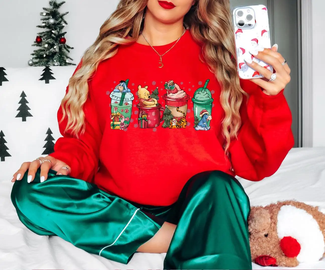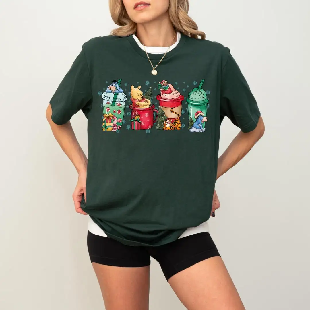 Winnie The Pooh Christmas Cup Shirt, Tigger & Piglet Christmas Drinking Tee, Eeyore Coffee Latte Lover Xmas Tee, Disney Pooh Bear Xmas Shirt