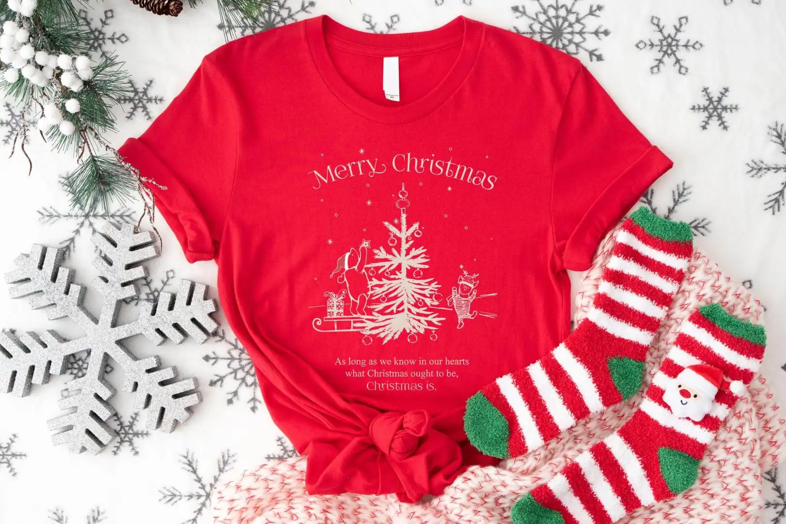 Winnie The Pooh Merry Christmas Shirt, Christmas Gift, Family Matching Xmas Tee, Disney Christmas Is Shirt, Disneyland Christmas Trip