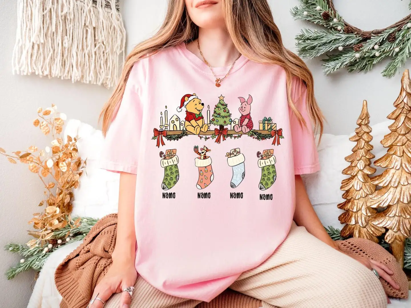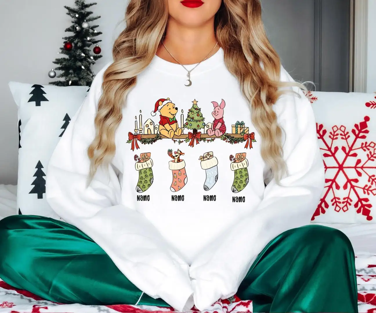 Winnie The Pooh Stockings Christmas Shirt, Disney Custom Pooh & Friends Xmas Tee, Piglet Xmas Gift Sweatshirt, Disneyland Family Holiday Tee
