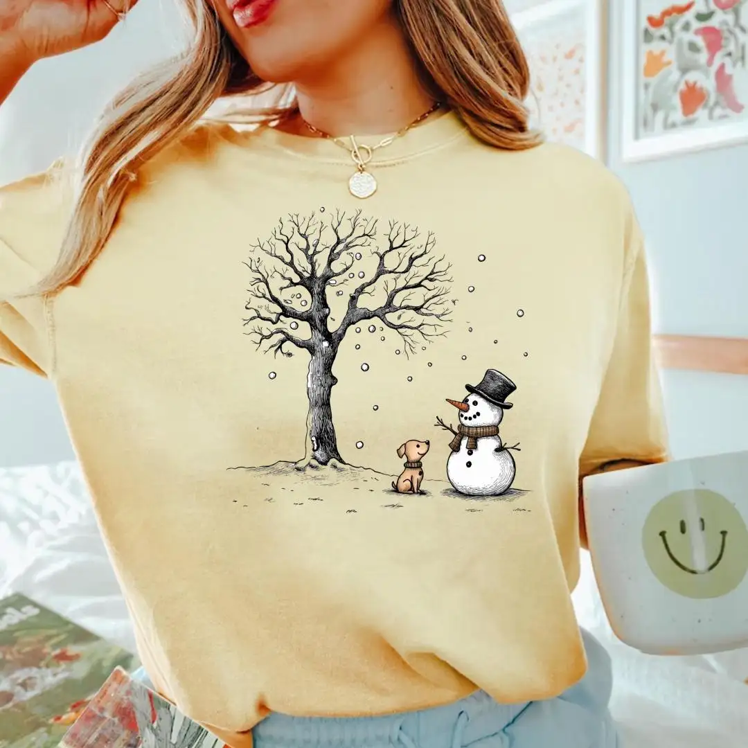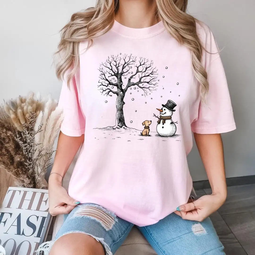 Review Winter Holiday Snowman And Dog Christmas Shirt