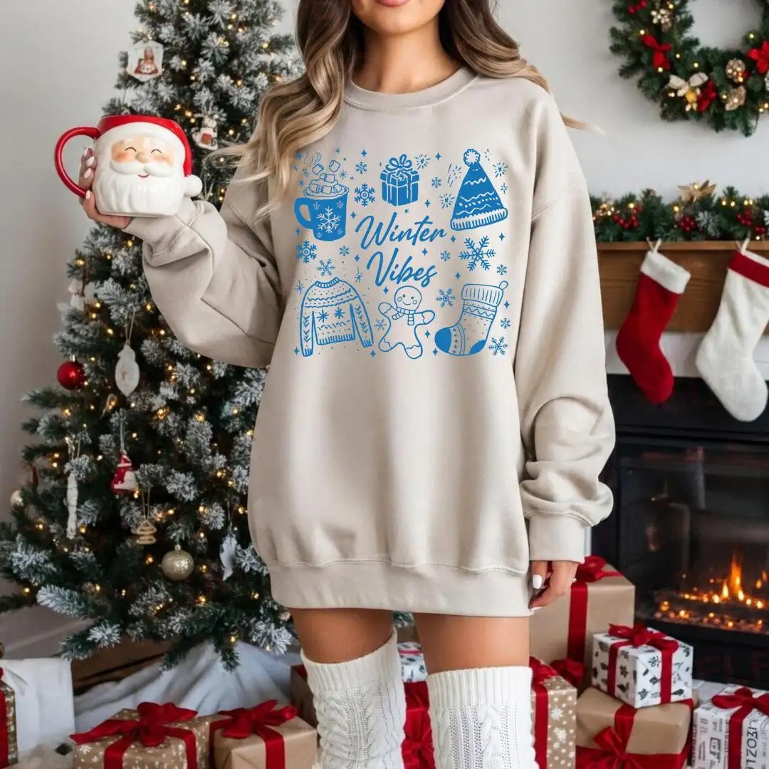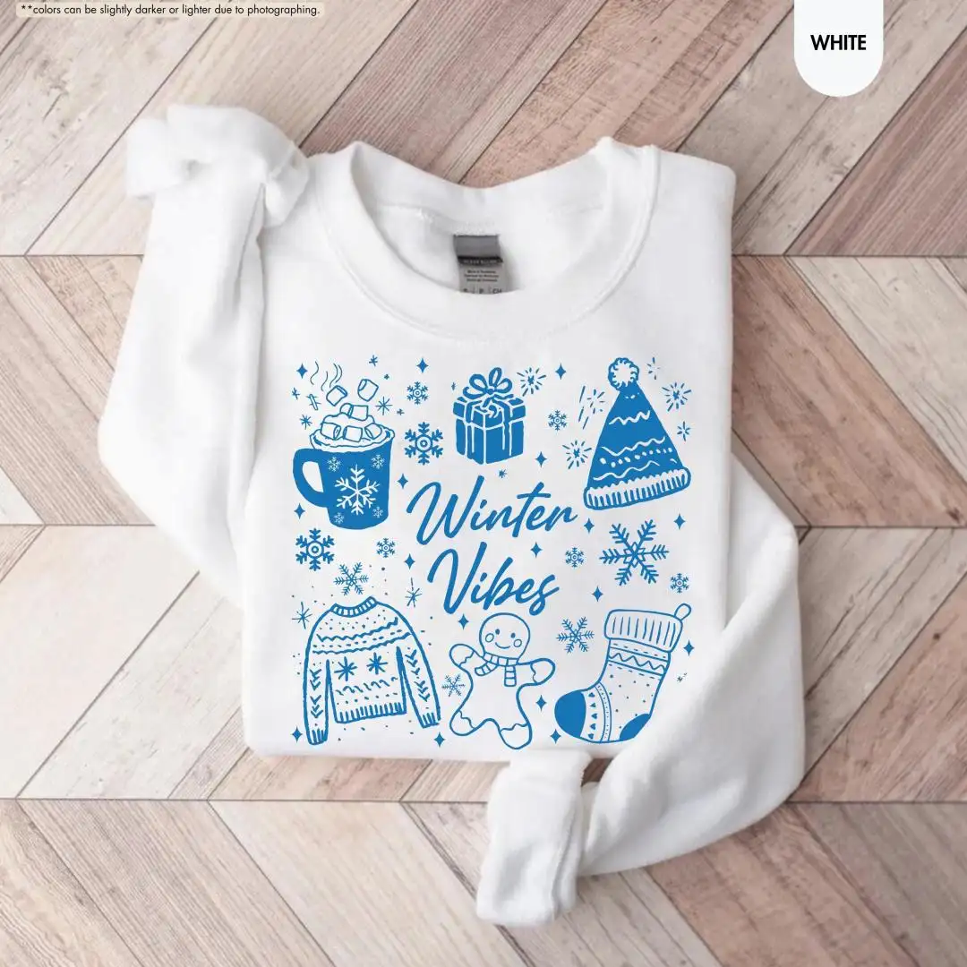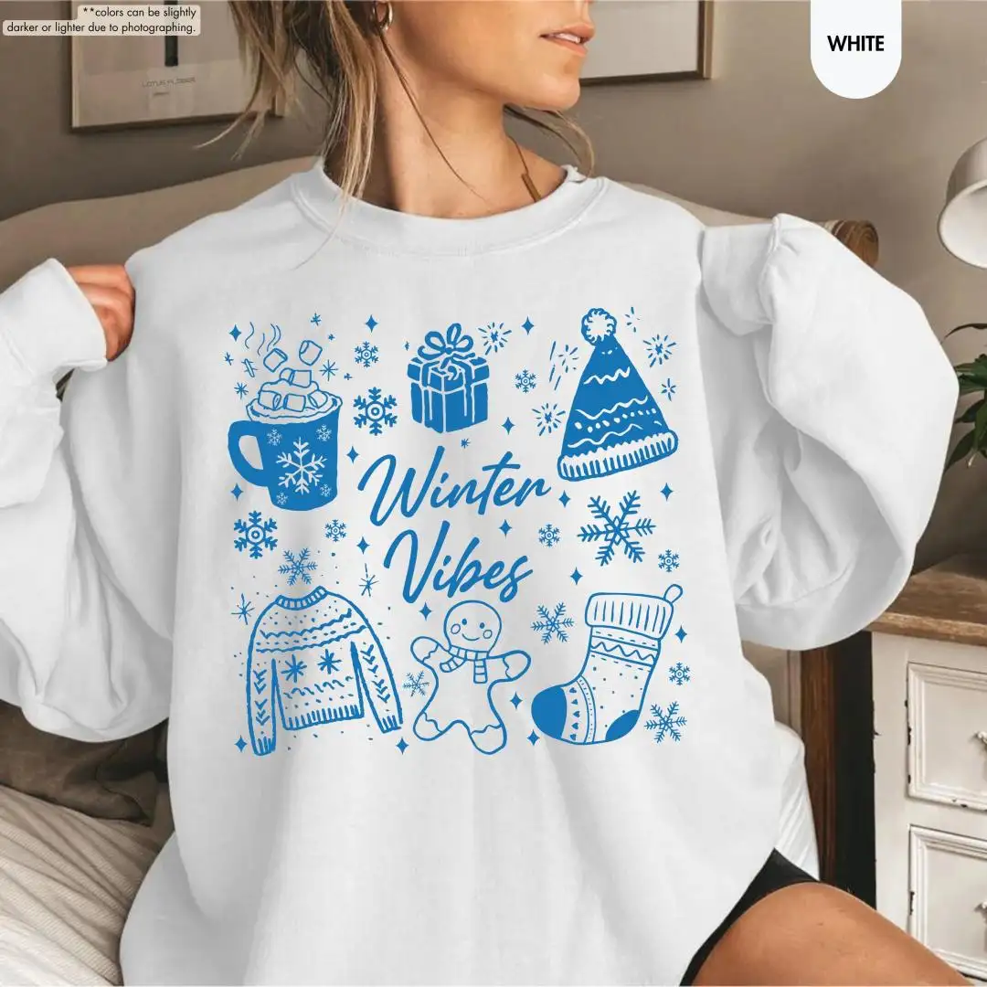 Winter Vibes Sweatshirt, Aesthetic Snow Season Pullover, Cozy Christmas Hoodie, Warm Gift for Her, Gingerbread Tee, Cute Holiday Winter Top