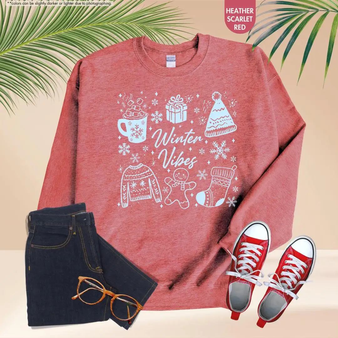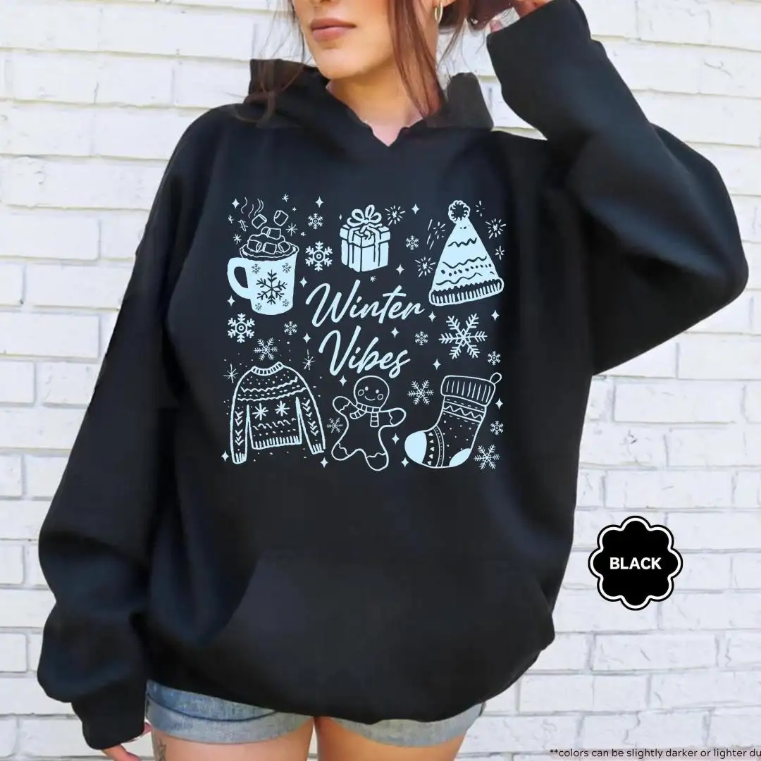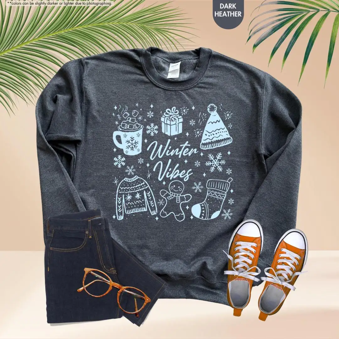 Winter Vibes Sweatshirt, Aesthetic Snow Season Pullover, Cozy Christmas Hoodie, Warm Gift for Her, Gingerbread Tee, Cute Holiday Winter Top