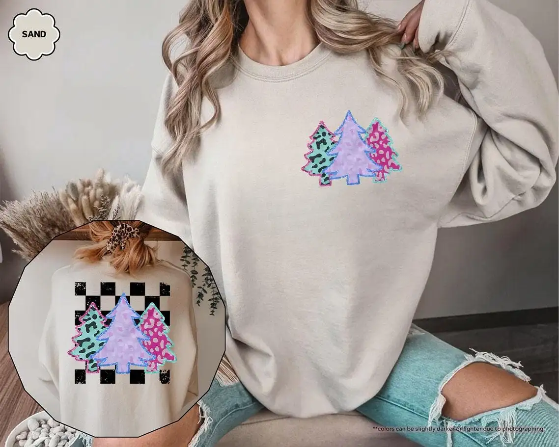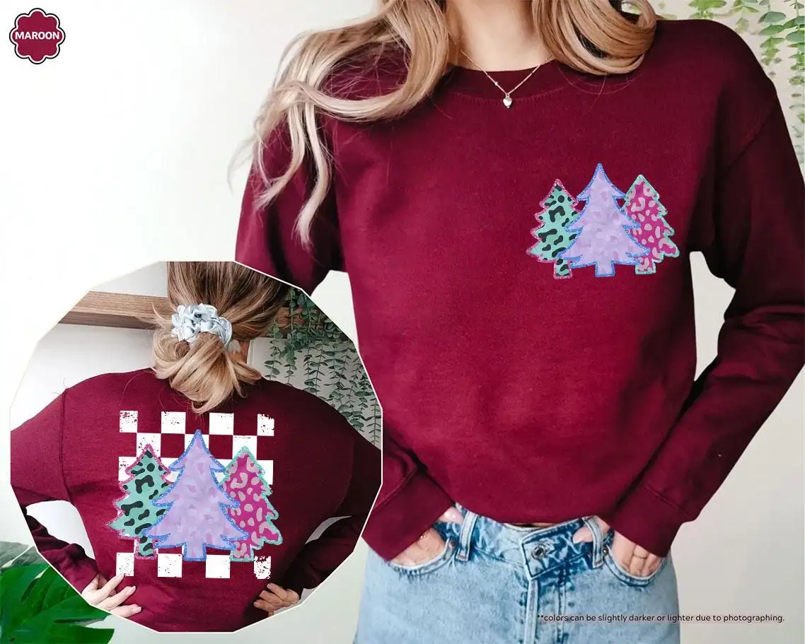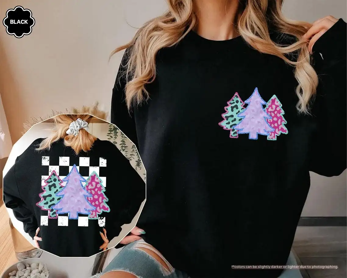 Women’s Glitter Leopard Christmas Tree Holiday Shirt