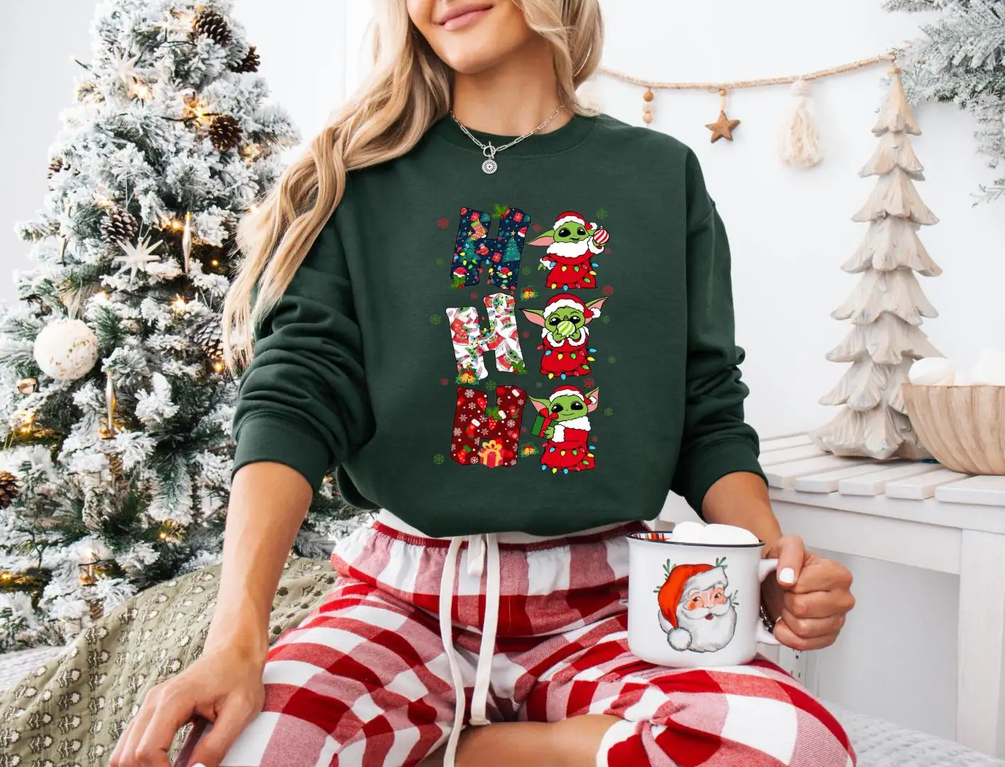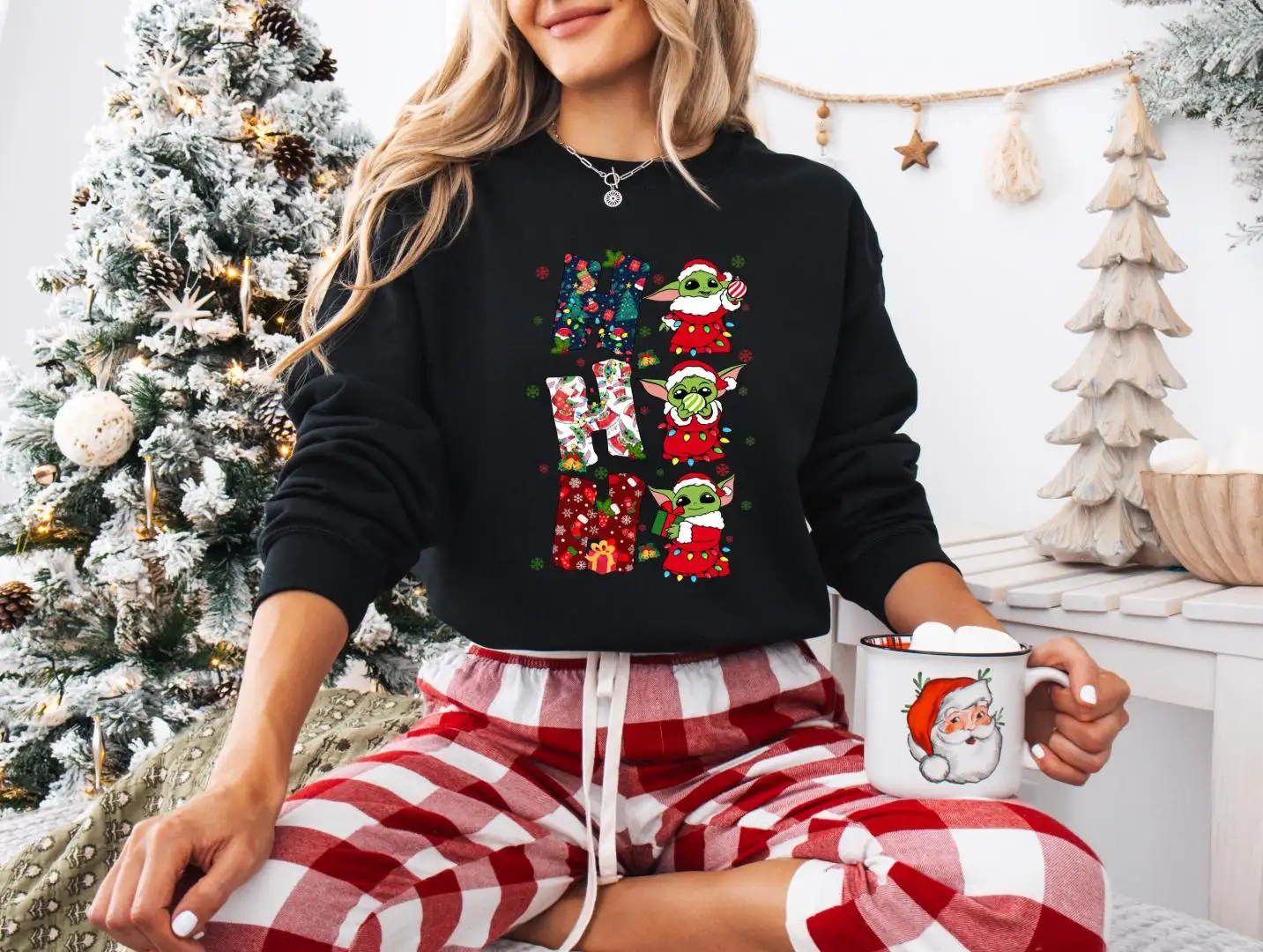 Yoda Christmas Shirts, Disney Galaxy's Edge Sweater, Star Wars XMAS Holiday Tee, Baby Yoda Ho Ho Ho Sweathirt, Yoda Kids Sweatshirt